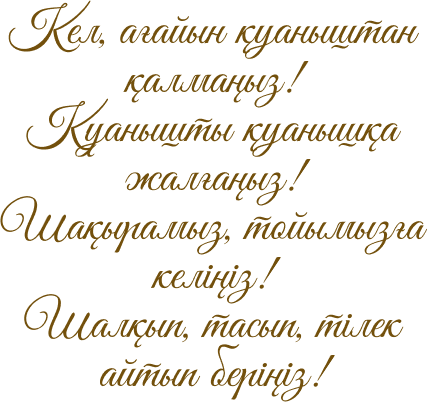 Құрметті ағайын-туыс, бауырлар, құда-жекжат, нағашы-жиен, бөлелер, құрбы-құрдас,
